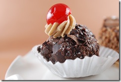 This one is like a trifle. It has chopped up maraschino cherries, which Bebe loves. That, and the cherry on top sure helps.
