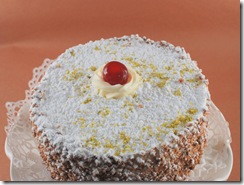 In the bakery’s window front display, there are a multitude of trays of petit fours. You can find a mini version of the Diplomat among a bevy of multi-coloured, nut-encrusted, maraschino-bejewelled pastries. There are so many to choose from that it is quite overwhelming—almost. The bakery keeps a supply of Diplomat Cakes as well as other cakes on hand and we didn’t have to pre-order one. I imagine though that if you had an important party, you’d want to pre-order just in case they ran out on a busy day.