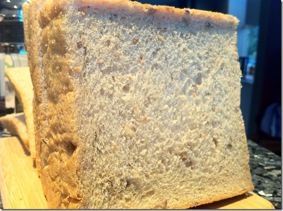 Step #1: Go to an Asian Bakery and buy a Pullman-style bread…any will do. It’s square and super soft. I chose this Whole Wheat Flax version from T and T. Actually any good quality white bread will do if you can’t find Asian Pullman bread.